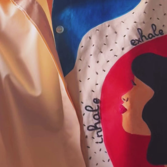 Deep Breaths Hand Embroidered and Hand Painted Button Up Cotton Shirt.